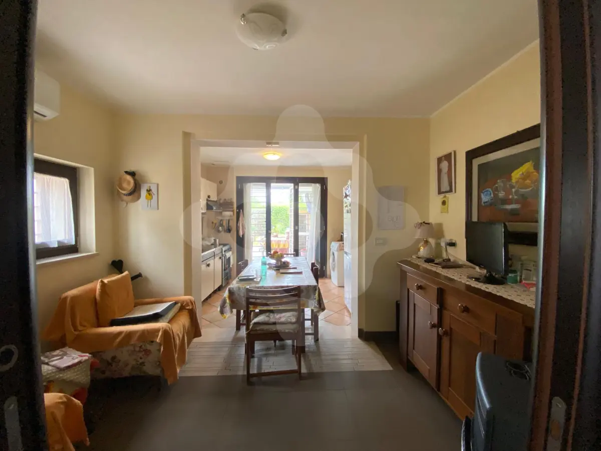 Alla soluzione si accede in un accogliente soggiorno, che porta ad una camera spaziosa, al bagno finestrato con doccia e ad una cucina abitabile con affaccio sull'atrio esterno, provvisto di pergolato, perfetto per momenti all'aperto.