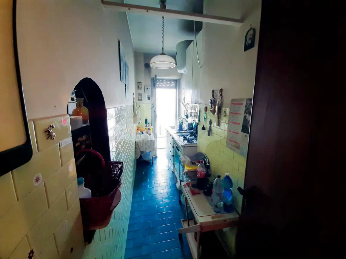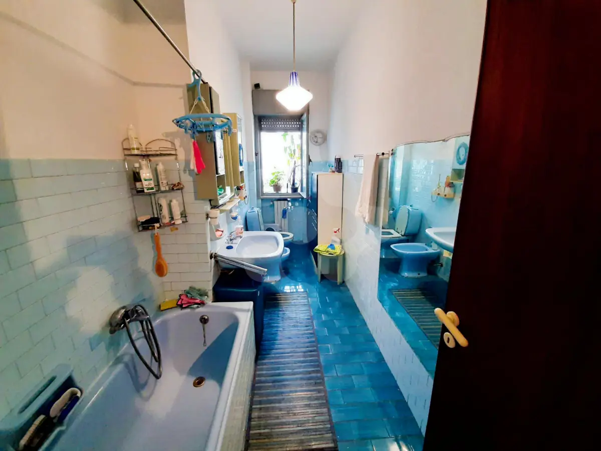 La soluzione, da ristrutturare, si distingue per una distribuzione interna razionale ed elegante, ed è così composta: ingresso in un comodo disimpegno, che conduce sulla destra all'ampio soggiorno adiacente al balcone con affaccio esterno e alla sinistra ad una sala da pranzo e cucina, che affacciano entrambe sul balcone interno verandato. Proseguendo nella zona notte troviamo 3 comode camere da letto, un bagno finestrato con vasca e un pratico e funzionale ripostiglio. La presenza di balconi diametralmente opposti garantiscono un’ottima luminosità e areazione naturale. L'impianto termico è centralizzato garantendo una spesa annuale inferiore ai consumi classici.