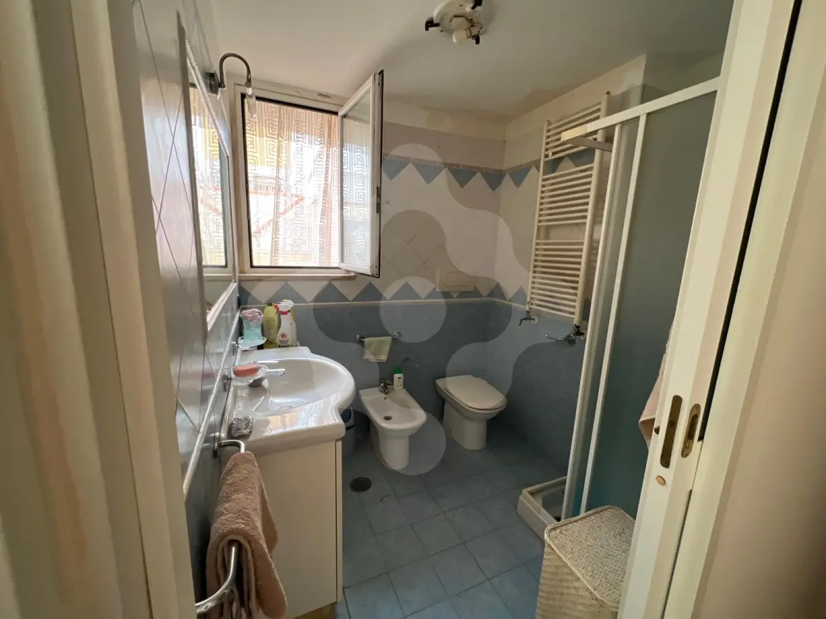 Il bagno, funzionale e ben posizionato nei pressi della zona living, è completo di box doccia e presenta l'indispensabile finestra per una corretta aerazione naturale.