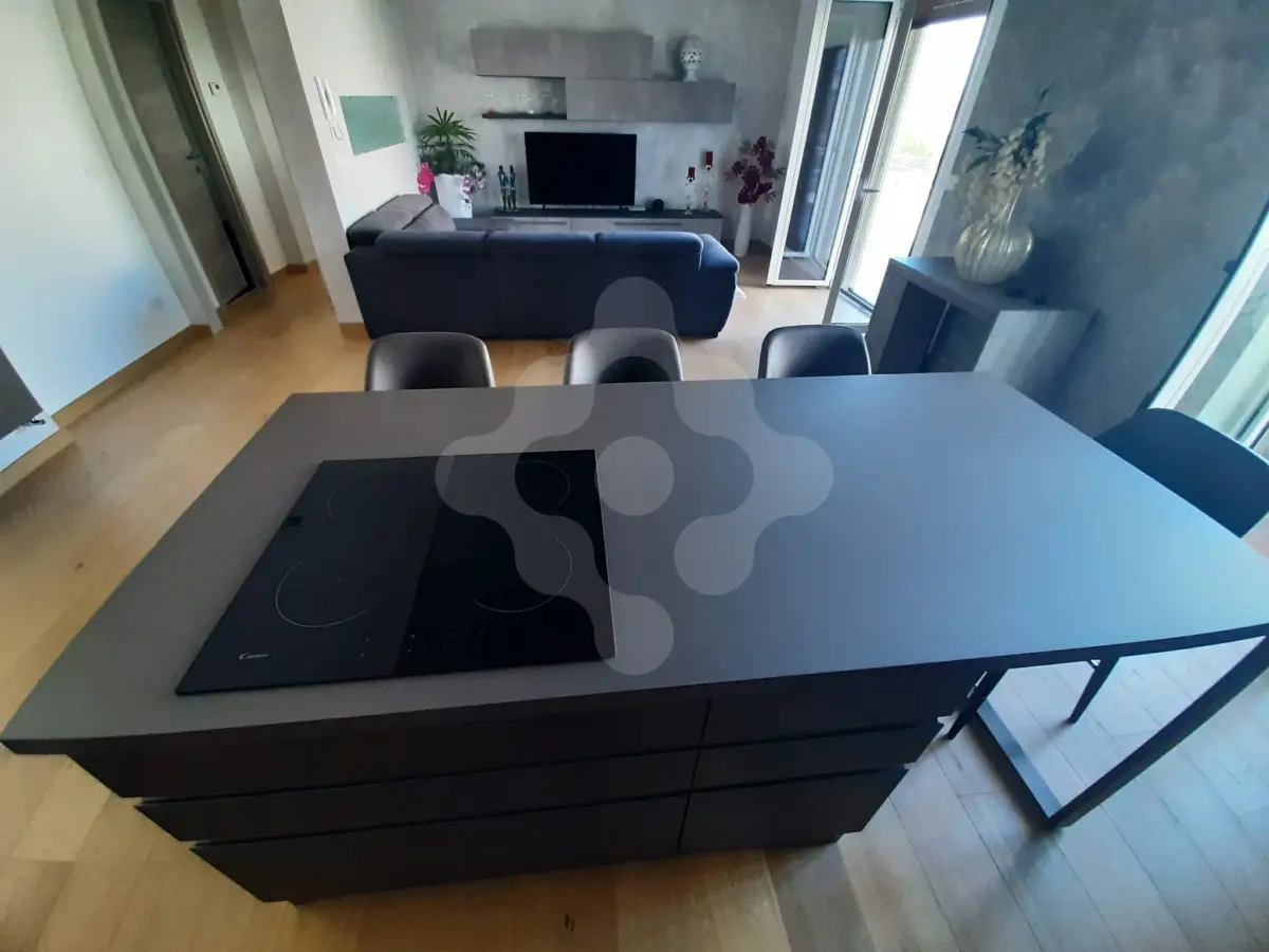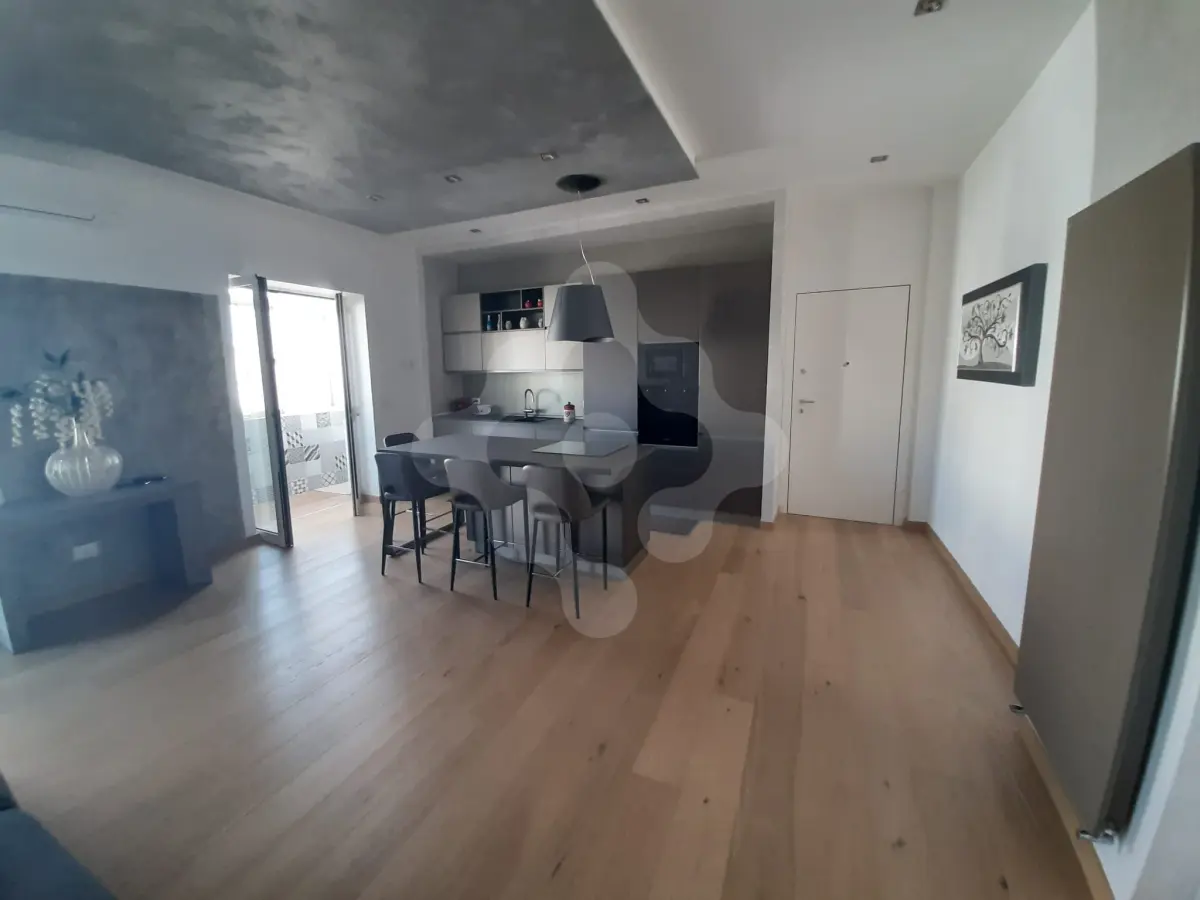 L’ingresso si apre su una spaziosa e ariosa zona living in open space, impreziosita da un angolo cottura a vista dal design contemporaneo e da una straordinaria luminosità naturale. Il balcone, in parte verandato, è stato adibito a comoda zona lavanderia, offrendo praticità e funzionalità.