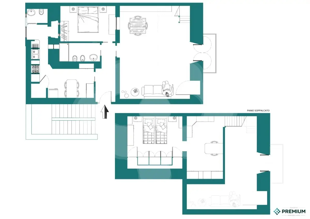 Nella zona notte è presente una camera da letto con letto matrimoniale e armadio a 4 stagioni e il bagno padronale dotato di sanitari sospesi e box doccia con rivestimento in mosaico. Sulla destra troviamo l'accesso alla zona livin con volte da 5,25 m soppalcata con affaccio su Via Quintino Sella . Sul soppalco sono presenti una comoda camera da letto ed un'aria adibita a studio.